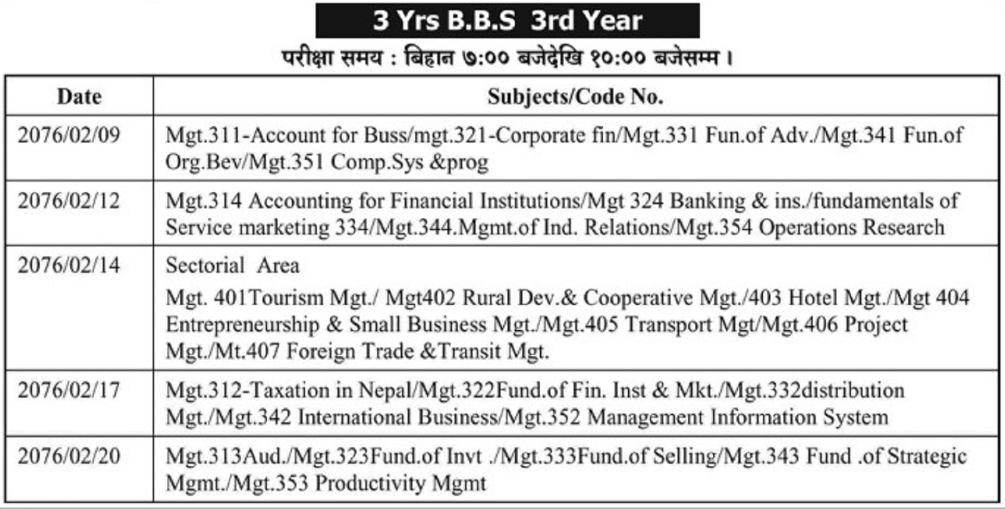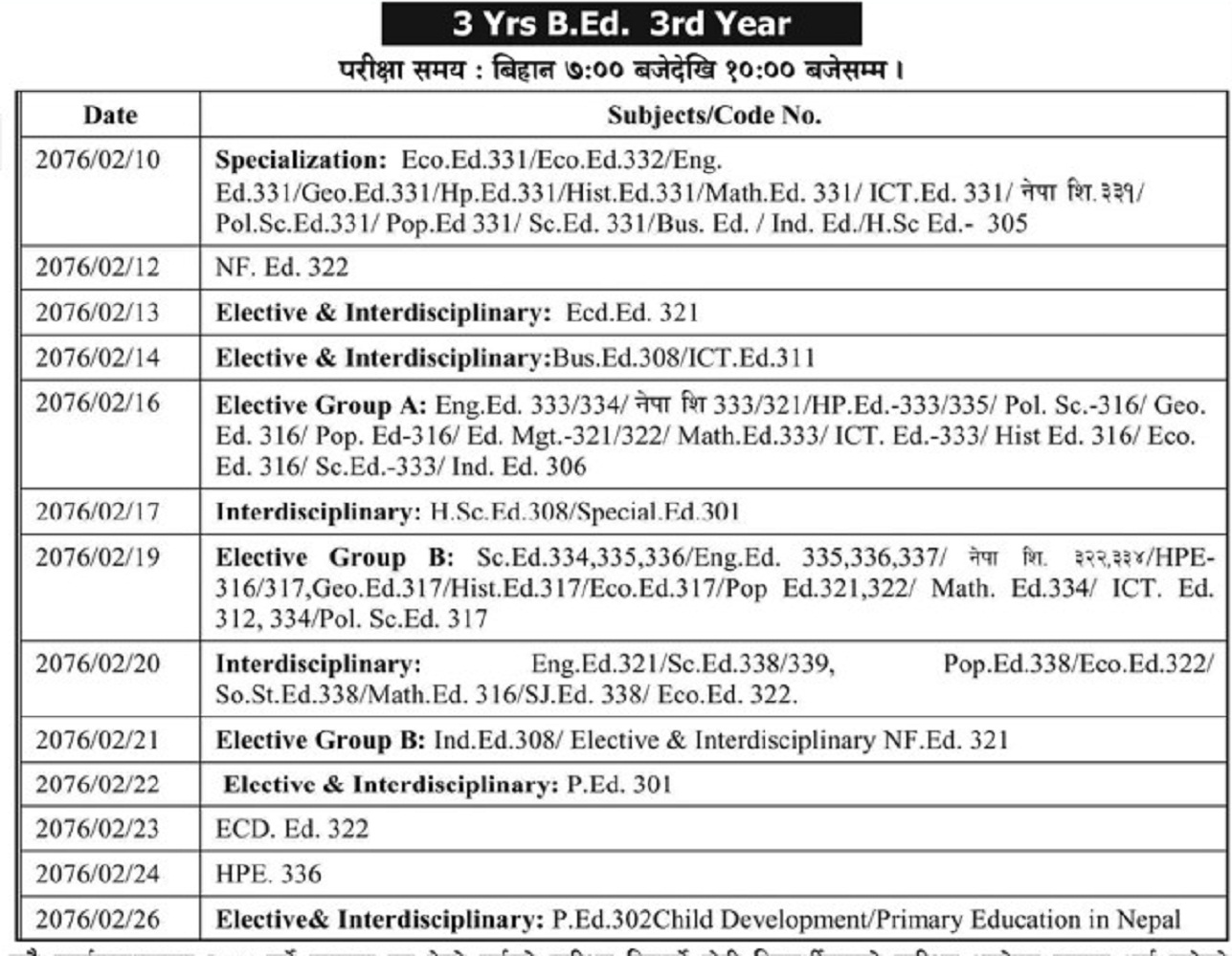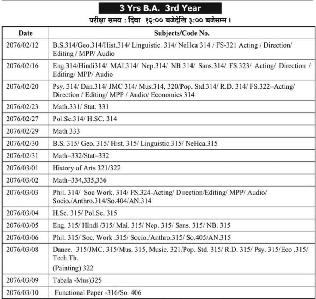 Read More3 Years BBS Third Year Exam Routine -076