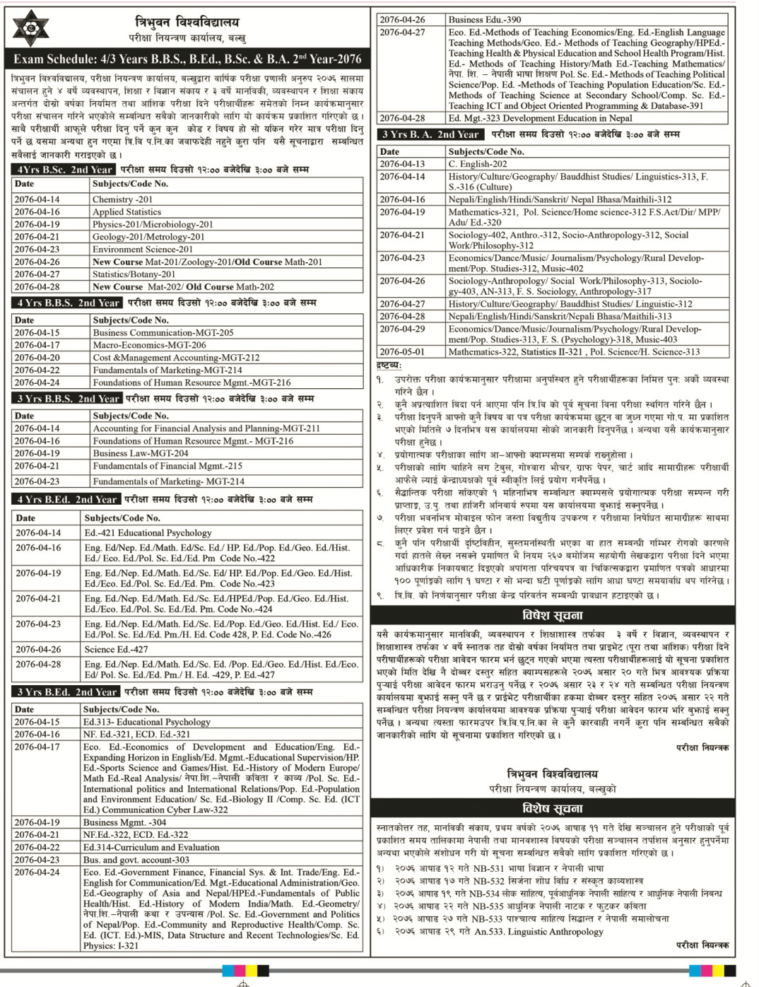 Read Moreत्रिभूवनविश्वविद्यालयले २०७६ सालमा सञ्चालन हुने स्नातक तह दोश्रो वर्षको परीक्षा तालिका प्रकाशित ग...