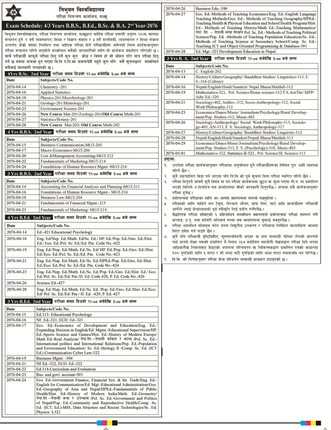 Read Moreत्रिभूवनविश्वविद्यालयले २०७६ सालमा सञ्चालन हुने स्नातक तह दोश्रो वर्षको परीक्षा तालिका प्रकाशित ग...